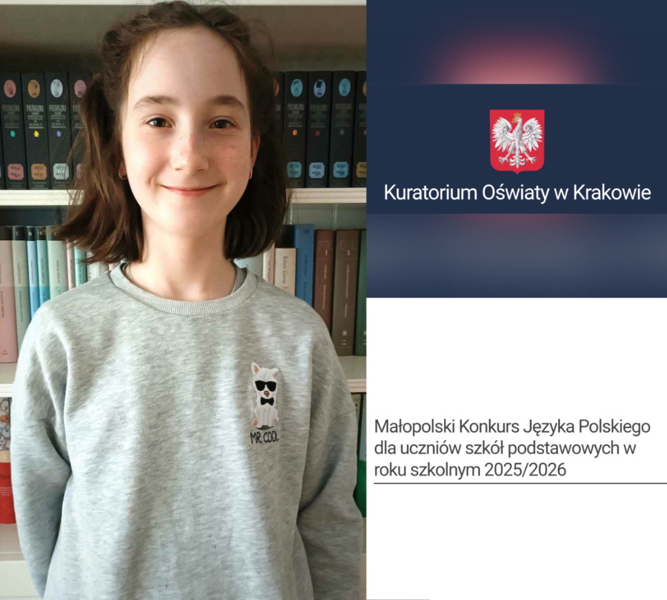 Z radością informujemy o sukcesie! 🥳🏆 Uczennica klasy szóstej naszej szkoły, Antonina Tokarska, została laureatką Małopolskiego Konkursu Języka Polskiego. 👏